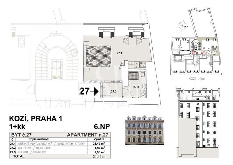 Luxusní, nově zrekonstruovaný, příjemně tichý, nezařízený byt 1+kk, 31,44 m2, 5. patro s novým moderním výtahem nově zrekonstruovaného novorenesančního domu v pěším dosahu prestižní Pařížské ulice, Staroměstského náměstí a nábřeží Vltavy, Kozí, Praha 1 - Staré Město. Byt nabízí vstupní halu, oddělenou kuchyň (digestoř, sklokeramická varná deska, elektrická pečící trouba, myčka, lednice, pračka), oddělenou ložnici, koupelnu se sprchovým koutem a toaletou. Kvalitní parketové podlahy v kombinaci s dlažbou. Centrální plynové vytápění a ohřev vody, bezpečností dveře, video intercom. Internet a TV od CETIN a Internet Praha Josefov. Kvalitní bydlení na prestižním, příjemném a klidném místě s veškerou občanskou vybaveností u metra Staroměstská, linie A či metra Náměstí Republiky, linie B. Poplatky 3 500 Kč/1 osoba, 5 600 Kč/2 osoby (zúčtovatelné 1x ročně, dálkové teplo a teplá voda z domovní kotelny, odpadky, úklid spol. prostor, elektřina výtah + spol. prostory) + elektřina. Vratná kauce 2 měsíční nájmy. Parking v ul. Bílkova za příplatek 6 050 Kč. Určeno výhradně pro dlouhodobý pronájem, nelze Airbnb. Nájemní smlouva na dobu určitou 1-3 roky s prolongací. Možnost přihlášení trvalého bydliště. Volný ihned. Doporučuji!