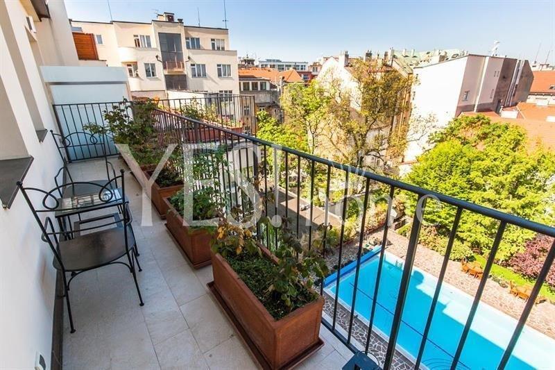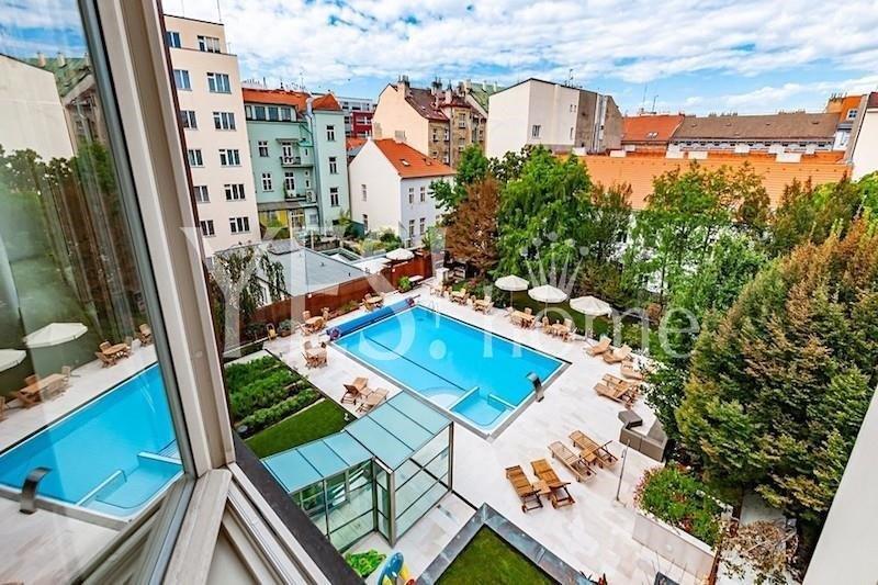 Luxusní, podkrovní, klimatizovaný, plně zařízený byt 1+kk s balkonem orientovaným do zahrady s vyhřívaným bazénem, 40,91 m2, 4. patro s výtahem v prestižním, kompletně zrekonstruovaném novorenesančním domě s recepcí 24/7 v rezidenční lokalitě nedaleko Riegrových sadů, Italská, Praha 2 - Vinohrady. V bytě je vstupní chodba s úložnými prostory, velký obývací pokoj s plně vybavenou kuchyňskou linkou (digestoř, sporák, pečící trouba, myčka, lednice, pračka), oddělená spací sekce s dvojlůžkem, posezení s TV, vstup na balkon a velká koupelna s rohovou vanou, toaletou a bidetem. Kvalitní dřevěné parketové podlahy v kombinaci s dlažbou. Bezpečnostní dveře, video intercom, satelitní TV, krásná zahrada s vyhřívaným venkovním bazénem s vodní masáží a saunou, venkovní grilování, parking v podzemních garážích, veškerý komfort pro pohodlné a příjemné bydlení. Perfektní dostupnost, u domu metro Náměstí Míru, linie A, metro I.P. Pavlova, linie C, tram. či bus linky, jen 5 minut chůze od Václavského náměstí. Nájem 1 100 Eur/měsíc. Fixní poplatky včetně energií 450 Eur/měs. + DPH. Parking za příplatek od 5 000 Kč + DPH. Vratná kauce 2 měsíční nájmy. Minimální doba nájmu 6 měsíců. Volný od 1.4. 2026.