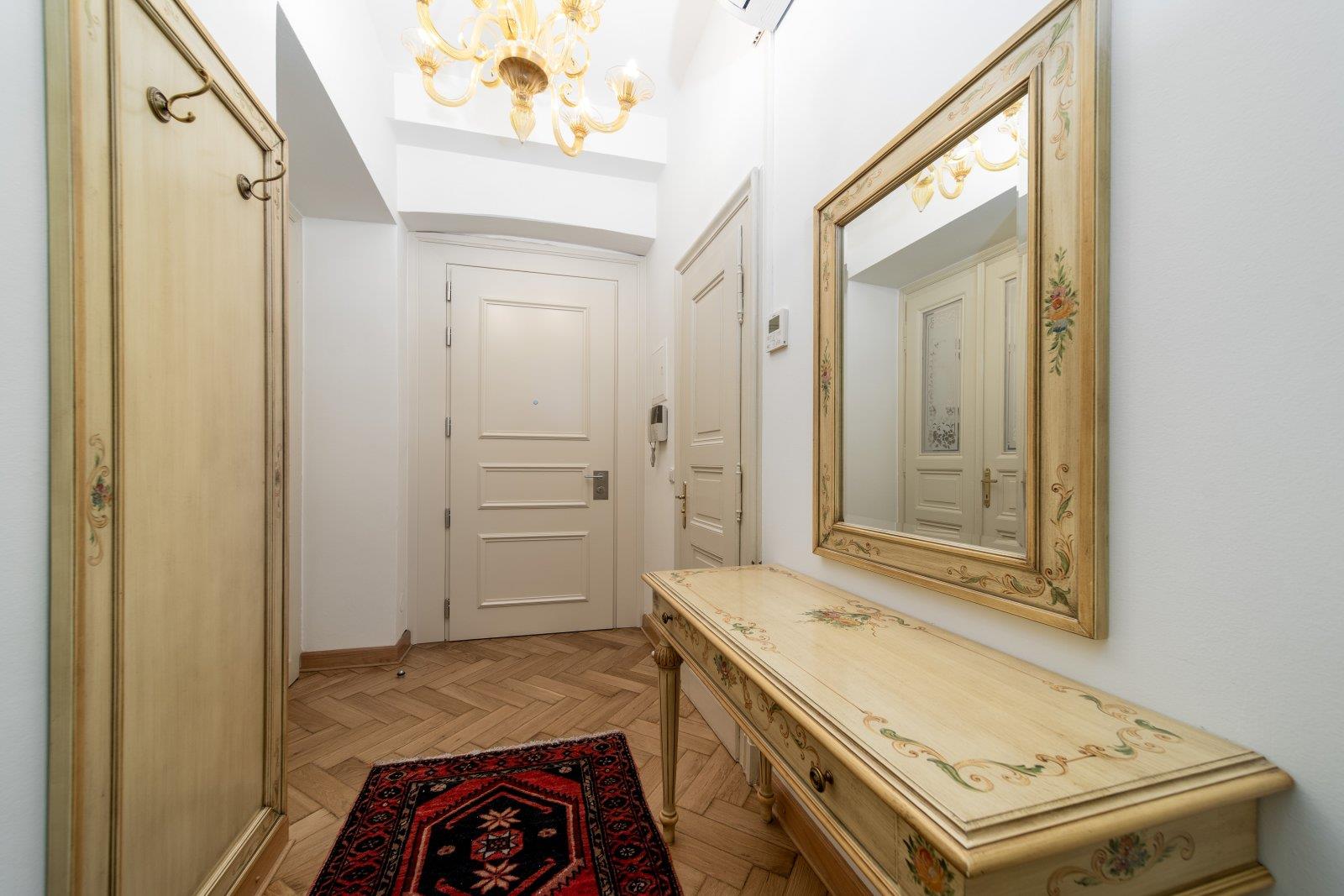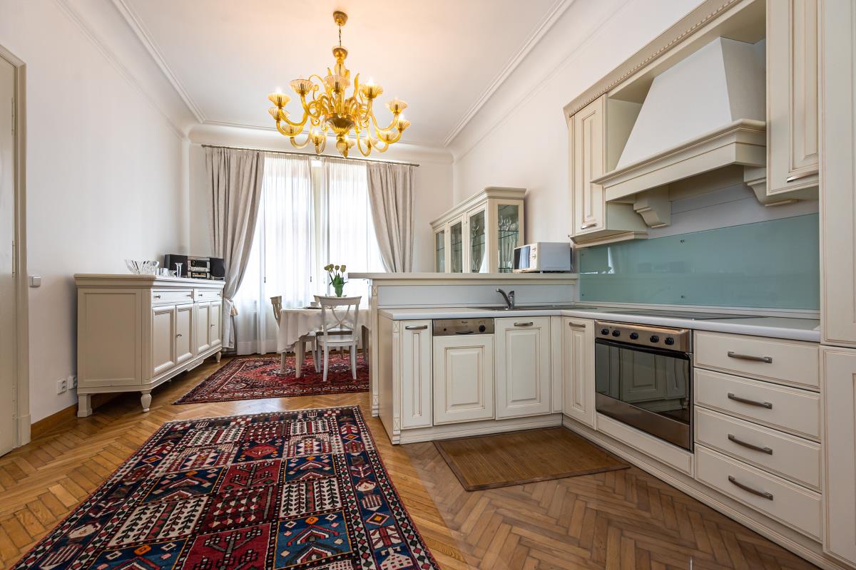 Luxusní, kompletně zařízený, velmi světlý byt 3+kk, 77,90 m2, 3. patro s výtahem v luxusně zrekonstruovaném reprezentativním secesním domě v samém srdci Prahy nedaleko Staroměstského náměstí a nábřeží Vltavy, Truhlářská, Praha 1 - Nové Město. V bytě je vstupní hala s úložnými prostory, plně vybavená kuchyně s jídelním koutem (digestoř, sporák, pečící trouba, myčka, lednice, veškeré nádobí a sklo), 2 neprůchozí ložnice s TV (1 ložnice, obývací pokoj), koupelna s vanou, toaletou, bidetem a pračkou. Celý apartmán je vybaven stylovým nábytkem na míru. Na podlahách kvalitní dřevěné parketové podlahy v kombinaci s dlažbou. K dispozici TV, SAT, WIFi, alarm, videotelefon, bezpečností dveře. V domě security systém. U domu veškerá občanská vybavenost, OC Palladium, metro Náměsí Republiky, linie B či v dosahu tram.linek. Nájem 1 600 Eur/měsíc. Fixní poplatky včetně energií 450 Eur/měs. + DPH. Vratná kauce 2 měsíční nájmy. Minimální doba nájmu 6 měsíců. Volný ihned.