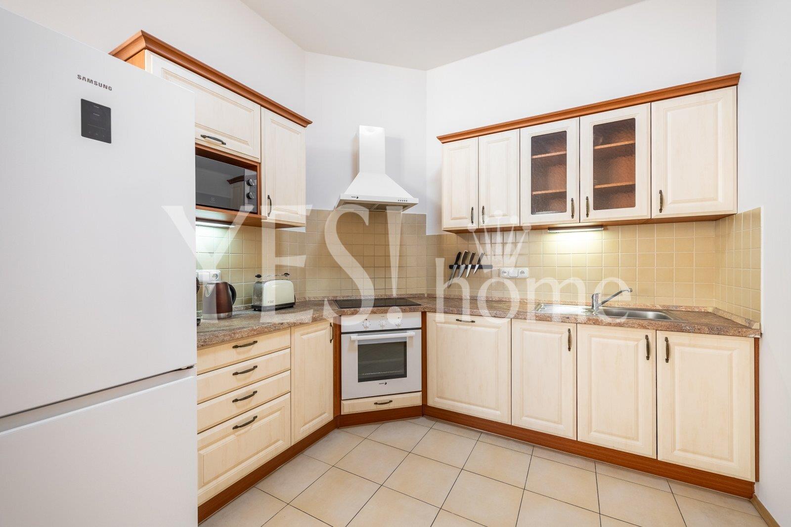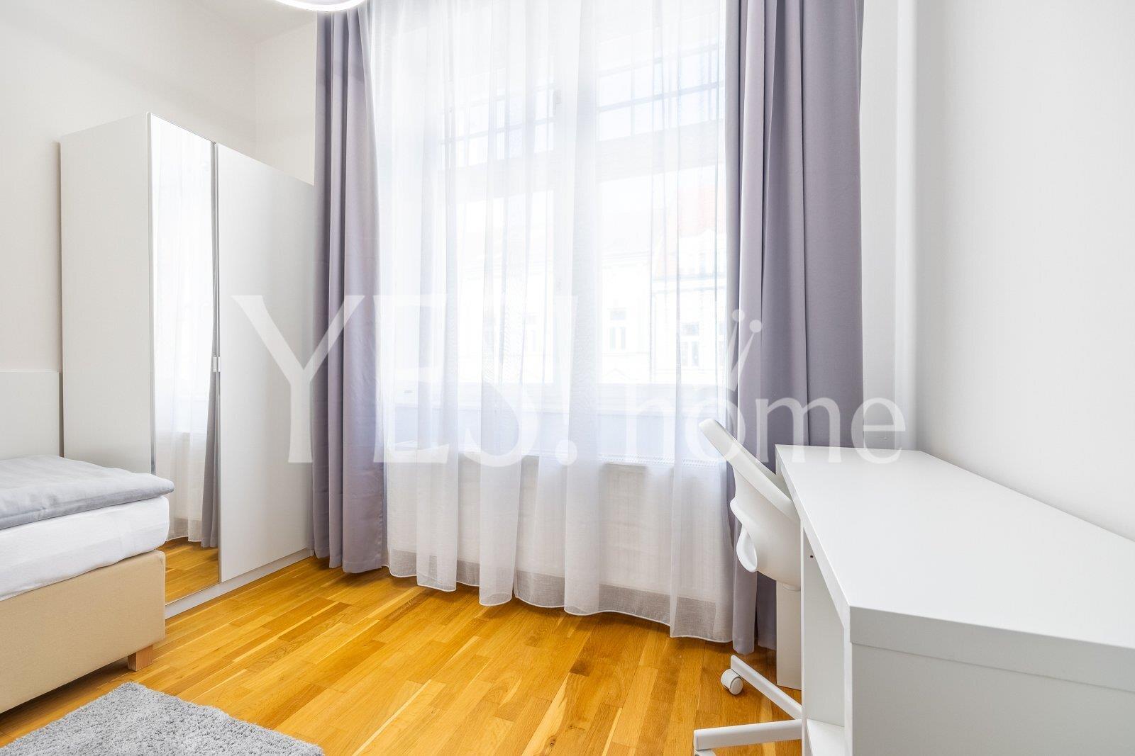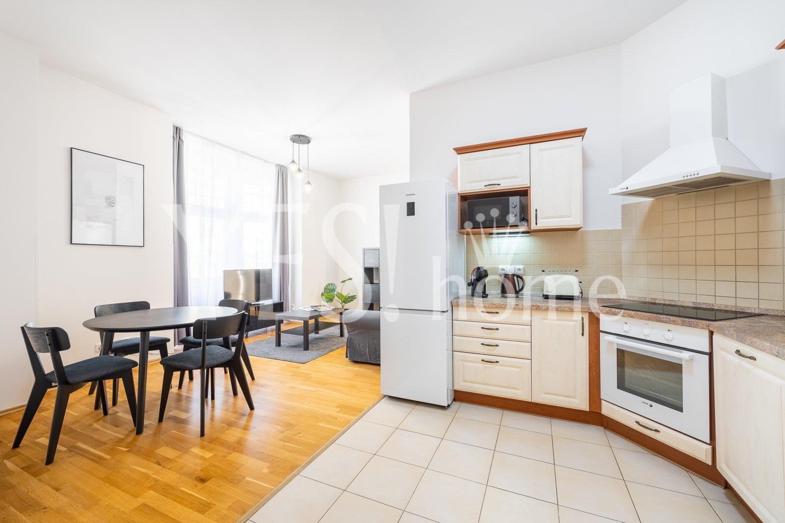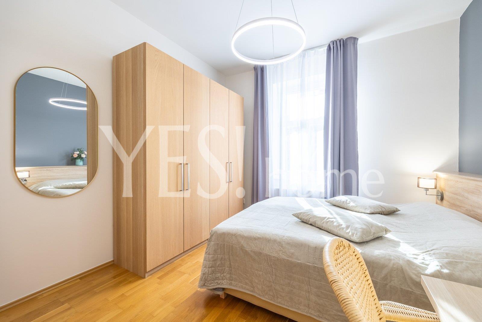 Krásný, plně zařízený byt 3+kk, 60 m2, 2. patro s výtahem v dobře udržovaném secesním domě v lukrativní lokalitě, Na Kozačce, Praha 2 - Vinohrady. V bytě je vstupní hala, obývací pokoj spojený s plně vybavenou kuchyňskou linkou s jídelní částí (digestoř, varná deska, pečící trouba, lednice, mrazák, myčka, mikrovlnná trouba, toustovač, kávovar, varná konvice, nádobí), 2 oddělené ložnice (1 dvoulůžková, 1 jednolůžková), koupelna se sprchovým koutem, pračkou, sušičkou a samostatná toaleta. Kvalitní dřevěná podlaha v kombinaci s dlažbou. Ústřední plynové vytápění. K dispozici LCD TV, DVD, SAT přijímač, free Wi-Fi internet, pračka se sušičkou. Výborná dopravní dostupnost do centra, nedaleko metro Náměstí Míru, linie A či tram. Jana Masaryka. Garážové stání za příplatek 2 000 Kč/měs.+ DPH. Poplatky 3 400 Kč/byt + energie 2 000 Kč/měs./os. Krátkodobě min. 1 měsíc 47 000 Kč all inclusive. Vratná kauce 1 měs. nájem. Volný od 1.2.2026