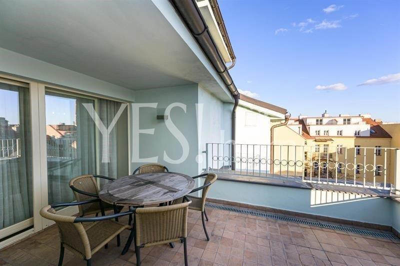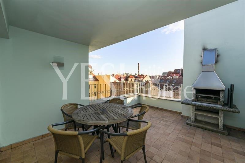 Luxusní, nově zrekonstruovaný, plně zařízený, příjemně tichý, plně klimatizovaný, podkrovní byt 4+kk s velkou terasou, 119 m2 (byt 100 m2, terasa 19 m), 5. patro s výtahem na bezpečnostní čip s dojezdem přímo do vstupní haly bytu v luxusní a romantické rezidenci v lukrativní lokalitě Anděl, ulice Jindřicha Plachty, Praha 5 - Smíchov. V bytě je velká vstupní hala s vestavěnými skříněmi, velký obývací pokoj s jídelní částí a plně vybaveným kuchyňským koutem (digestoř, sklokeramická varná deska, pečící trouba, mikrovlnná trouba, myčka, lednice s mrazákem), 3 oddělené ložnice s dvojlůžky, 2 koupelny (vana, toaleta a sprchový kout, toaleta), technická místnost s pračkou a sušičkou) a velká jižní terasa s posezením a grilem. K dispozici LCD TV, SAT, dálkově ovládaný hi-fi systém (CD, DVD, radio), wi-fi free. Kvalitní laminátová podlaha v kombinaci s dlažbou. Centrální plynové vytápění. Možnost úklidu 1x týdně (výměna lůžkovin a ručníků). Přímo u domu metro Anděl, linie B a dostatek tram. a bus. linek. Parkování za příplatek 200 m od domu. Poplatky za služby paušál 3 000 Kč + zálohy na energie 7 100 Kč. Vratná kauce 1 měs. nájem + poplatky. Volný ihned.