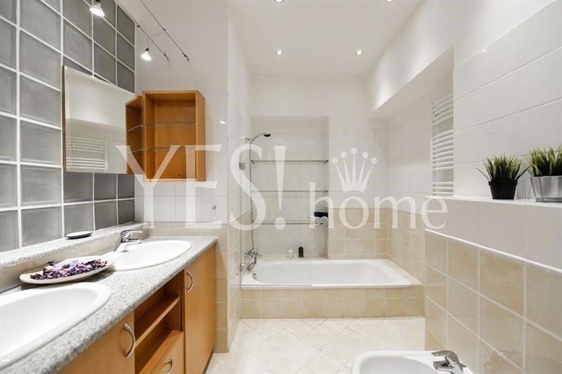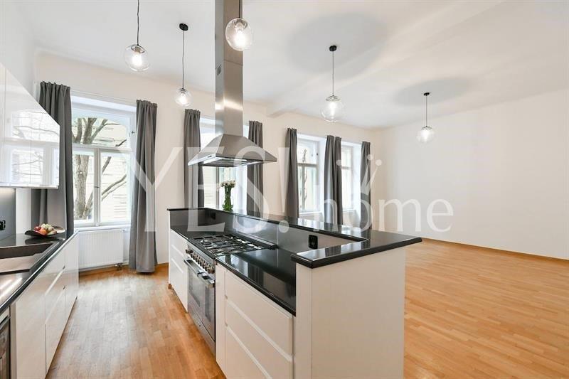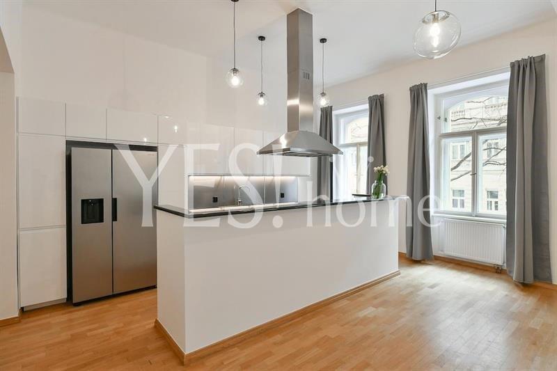 Luxusní, mezonetový, nově zrekonstruovaný, velmi tichý, nezařízený byt 3+kk s balkonem, 118 m2 (byt 115 m2 + balkon 3 m2), zvýšené přízemí a 1. patro s výtahem ve velmi dobře udržovaném, nově renovovaném, secesním domě s bezpečnostním kamerovým systémem v lukrativní a klidné lokalitě centra města přímo u Riegrových sadů, Mánesova, Praha 2 - Vinohrady. V bytě je velká vstupní hala, velký obývací pokoj s novým plně vybaveným kuchyňským koutem s barovým pultem (digestoř, sklokeramická varná deska, pečící trouba, mikrovlnná trouba, myčka, americká lednice), 2 samostatné ložnice, 2 en-suite koupelny (vana, toaleta, bidet a sprchový kout, toaleta, bidet), další oddělená toaleta pro hosty, praktická komora s pračkou a sušičkou, balkon orientovaný do vnitrobloku. Kvalitní dřevěné parketové podlahy v kombinaci s dlažbou. Elegantní vysoké stropy. Byt je zabezpečen bezpečnostím zámkem. K dispozici TV, DVD, SAT a internetové připojení, video intercome. Za domem Riegrovy sady, plavecný bazén, atletická dráha, dětská hřiště a mnoho vyhlášených restaurantů. Perfektní dostupnost, jen 10 min. pěší chůze k Václavskému náměstí, u domu tram. Vinohradská tržnice, linka 11, nedaleko metro Náměstí Míru, linie A či Jiřího z Poděbrad, linie A. Garážové stání za extra příplatek 6 500 Kč. Poplatky 4 500 Kč + energie (cca 5 000 Kč). Vratná kauce 90 000 Kč. Volný od 1.1.2026. Prohlídky ihned.