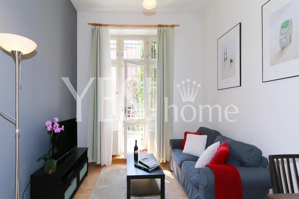 Beautiful, fully furnished, 1 bedroom apartment with orientation to the courtyard, 45 sqm (apt. 42 sqm + balcony 3 sqm), 1st floor with elevator in very well maintained building in lucrative area, Belgická street, Praha 2 - Vinohrady. There is entrance hall, living room with equipped kitchen (stove, oven, refrigerator, freezer, dishwasher, microwave, toaster, kettle, coffee maker, dishes) with entrance to balcony, separate bedroom with double bed, bathroom with shower corner, washing machine, dryer and separate toilet. Quality wooden floors in combination with tiles. Free LCD TV, DVD, satellite, Wi-Fi internet, washer-dryer. Next metro Náměstí Míru, line A and tram lines. Bills 3 400 CZK /apt. + energy 2 000 CZK / month. / person. Parking for extra fee 2 000 CZK + VAT/month. Short term min. 1 month 41 000 CZK all inclusive. Refundable deposit 1 monthly rent. Available from 9.2.2026.
