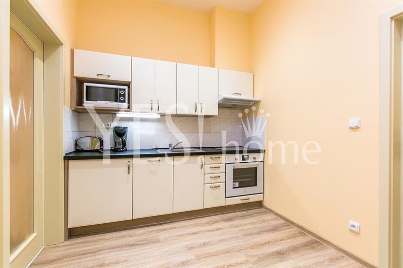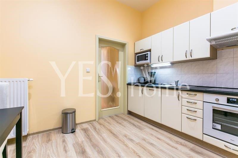 Luxury, new renovated, fully furnished, 1 bedroom apartment, 40 sqm, ground floor with elevator in completely renovated, well maintained Art Nouveau building in lucrative area close to parks Havlíčkovy sady and Bezručovy sady, Máchova street, Praha 2 - Vinohrady. The apartment offers entrance hall, fully equipped kitchen with dining area (hood, ceramic hob, electric oven, microwave oven, dishwasher, fridge, coffee maker, toaster, dishes), bedroom with double bed and living area with sofa and TV, bathroom with shower, washer and dryer and toilet. Just 3 min. from metro st. Náměstí Míru, line A, or tram. st. Jana Masaryka. Free wifi and SAT programs included in the price. Possibility of garage parking in the courtyard for a fee 2 000 CZK + VAT/place/month. Bills 3 400 CZK/apt. + energy 2 000 CZK/month./person. Short term min. 1 month 38 000 CZK all inclusive. Refundable deposit 1 monthly rent. Available from 9.2.2026.