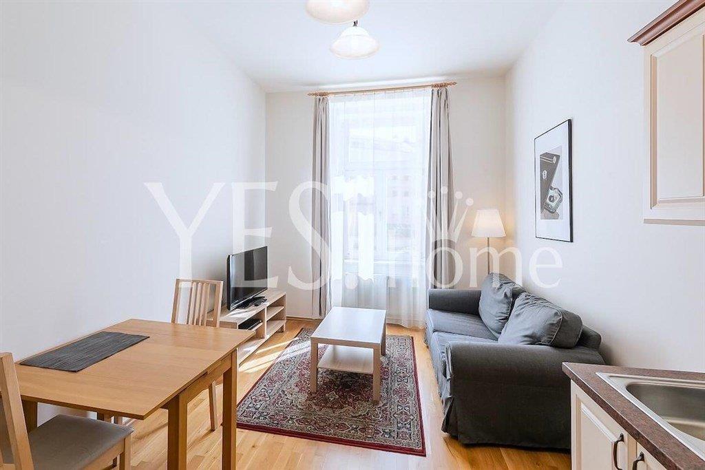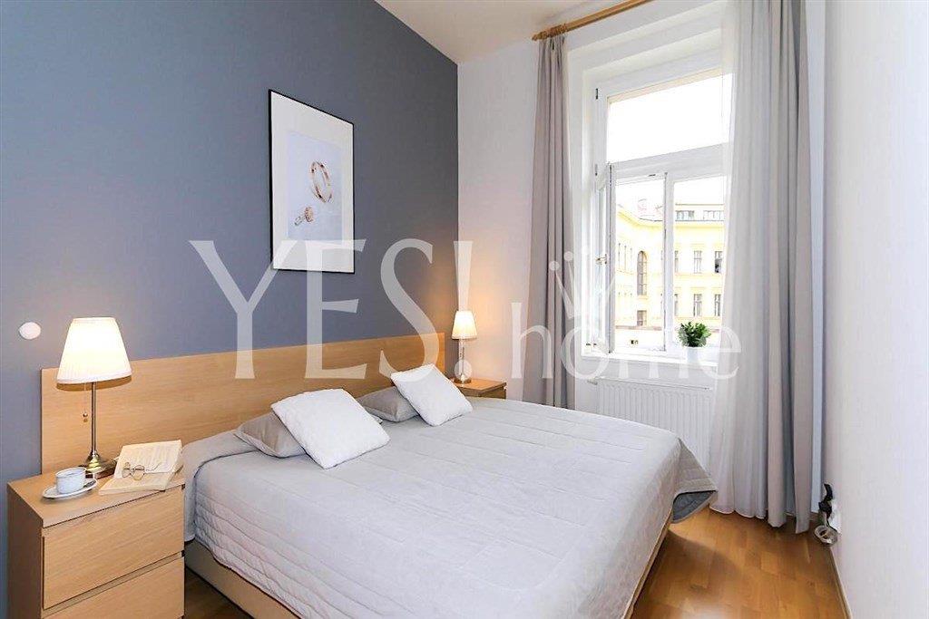 Luxury, new renovated, fully air-conditioned, modern furnished, 1 bedroom apartment, 53 sqm, 1st floor in well maintained Art Nouveau building in lucrative area, Moravská street, Praha 2 - Vinohrady. The apartment offers entrance hall, living room with TV connected with fully equipped kitchen with dining area (hood, ceramic hob, electric oven, microwave, dishwasher, kettle, coffee maker, toaster, dishes, fridge), separate bedroom, bathroom with bathtub, washer, dryer and toilet. Quality wooden floors in combination with tiles. Gas heating. Free LCD TV, DVD, satellite, Wi-Fi internet. Next metro Náměstí Míru, line A or tram. st. Jana Masaryka. Garage parking for a fee 2 000 CZK/month. + VAT. Bills 3 400 CZK /apt. + energy 2 000 CZK / month. / person. Short term min. 1 month 41 000 CZK all inclusive. Refundable deposit 1 monthly rent. Available from 1.3.2026.