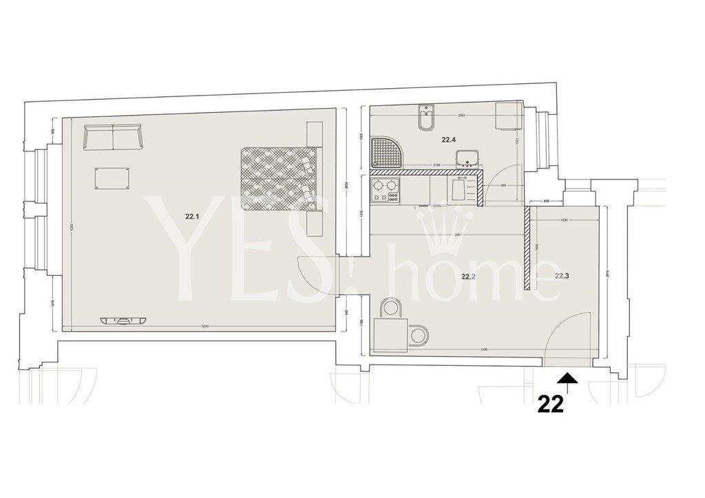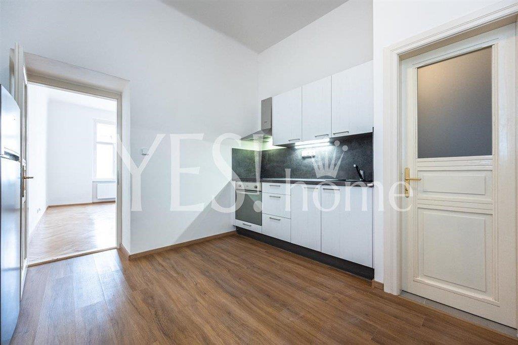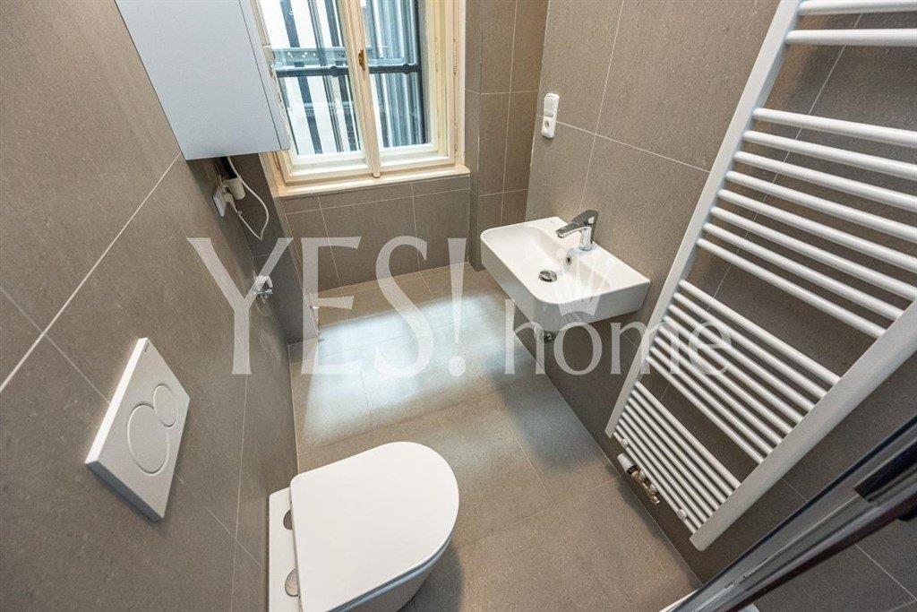 Luxury, new renovated, unfurnished, one bedroom apartment, 40,90 sqm, 4th floor with new modern elevator of new renovated Art Nouveau building near Václavské náměstí, Lípová str., Praha 2 - Nové Město. The apartment offers entrance hall, living room with fully equipped kitchen (hood, ceramic hob, electric oven, dishwasher, fridge, washing machine), separate bedroom, bathroom with shower and toilet. Quality parquet floors combined with tiles, own new gas boiler Vaillant (water heating, heating), security door, intercom. Next the house tram. st. Štěpánská, near metro st. I.P. Pavlova, line C or metro st. Karlovo náměstí, line B. Bills 1 700 CZK/person + energy will be transfer to the tenant. Available from 1.4. 2026.