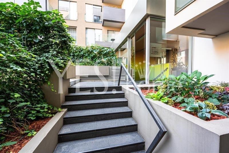 Luxury, modern and fully furnished one bedroom apartment with two balconies, 71 sqm (apt. 62 sqm + 2 balconies 9 sqm) in the 4th floor in the building with reception 24/7, garden and parking space in the underground garage of the house in Prokopova street, Praha 3 - Žižkov. The orientation of the apartment to the street on the west side and to the courtyard on the east side. The apartment consists of entrance hall, living room connected with equipped kitchen (hood, hob, oven, dishwasher, washing machine), separate bedroom, bathrooms bath and toilet. The apartment has all the modern design, built-in mirrored wardrobes, modern lighting and shading, superior materials, large windows, steel and glass materials, teak wood parquet mosaic floor, mosaic tiles, sanitary ware Butterfly, satellite, Dial Telecom + UPC internet with optical cable, intercom. Great location, only 5 min. tram. st. Olšanské náměstí or tram. st. Lipanská, just 2 stops by bus to metro Florenc, line B, C, just 10 min. from Václavské náměstí. Bills including energy 8 000 CZK (billable once a year). Garage parking space and cellar for extra fee. Refundable deposit 2 monthly rents. Available immediately.