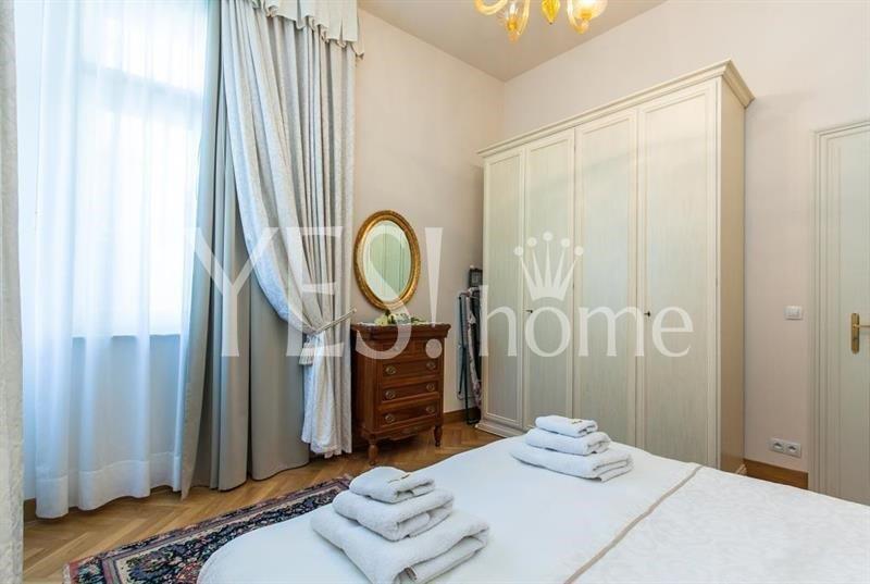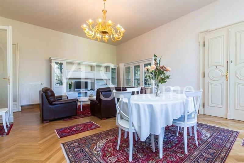 Luxury, air conditioned, fully furnished 2 bedroom apartment with balcony, orientation to the street, 93,5 sqm (flat 91,58 sqm, balcony 1,92 sqm), 2nd floor with elevator in prestigious, new renovated Neo-Renaissance building in residential location, Italská street, Praha 2 - Vinohrady. The apartment consists of entrance hall, large living room with TV and fully equipped kitchen (hood, stove, oven, dishwasher, refrigerator, washing machine), 2 separate bedrooms with double bed and TV, entrance to the balcony, bathroom with corner bathtub, toilet and bidet and second separate toilet. Quality wooden parquet floors in combination with tiles. 24/7 reception, nice garden, swimming pool with hydro massage, sauna, garden barbecue, parking. Perfect location, next metro Naměstí Míru, line A, metro I.P. Pavlova, line C, tram. or bus lines, just 5 minutes walk from Václavské náměstí, near Riegrovy sady. Rent 2 000 Eur/month. Fixed bills including energy 550 Eur/month + VAT. Parking for extra fee from 5 000 CZK + VAT. Deposit 2 monthly rents. Minimum rental period 6 months. Available from 1.1.2026.