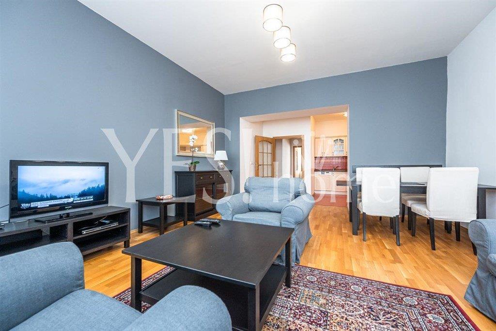 Fully furnished 2 bedroom apartment, 85 sqm, 3rd floor very well maintained building with a lift in a lucrative part of the city, Sázavská street, Praha 2 - Vinohrady. There is an entrance hall, large living room with fully equipped kitchen corner (stove, oven, refrigerator, freezer, dishwasher, microwave, toaster, kettle, coffee maker, dishes), 2 separate bedrooms, bathroom with shower corner, washing machine, dryer and toilet. Available LCD TV, DVD, satellite receiver, WiFi internet. On the floors quality wooden floors combined with tiles. Gas central heating. Great location near metro Náměstí Míru, line A, bus Náměstí Míru or tram. st. Jana Masaryka. Possibility of garage parking in the courtyard for a fee 2 000 CZK + VAT/place/month. Bills 3 400 CZK/apt. + energy 2 000 CZK/month./person. Short term min. 1 month 55 000 CZK all inclusive. Refundable deposit 1 monthly rent. Available immediately.