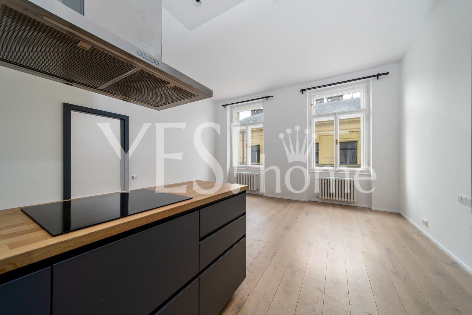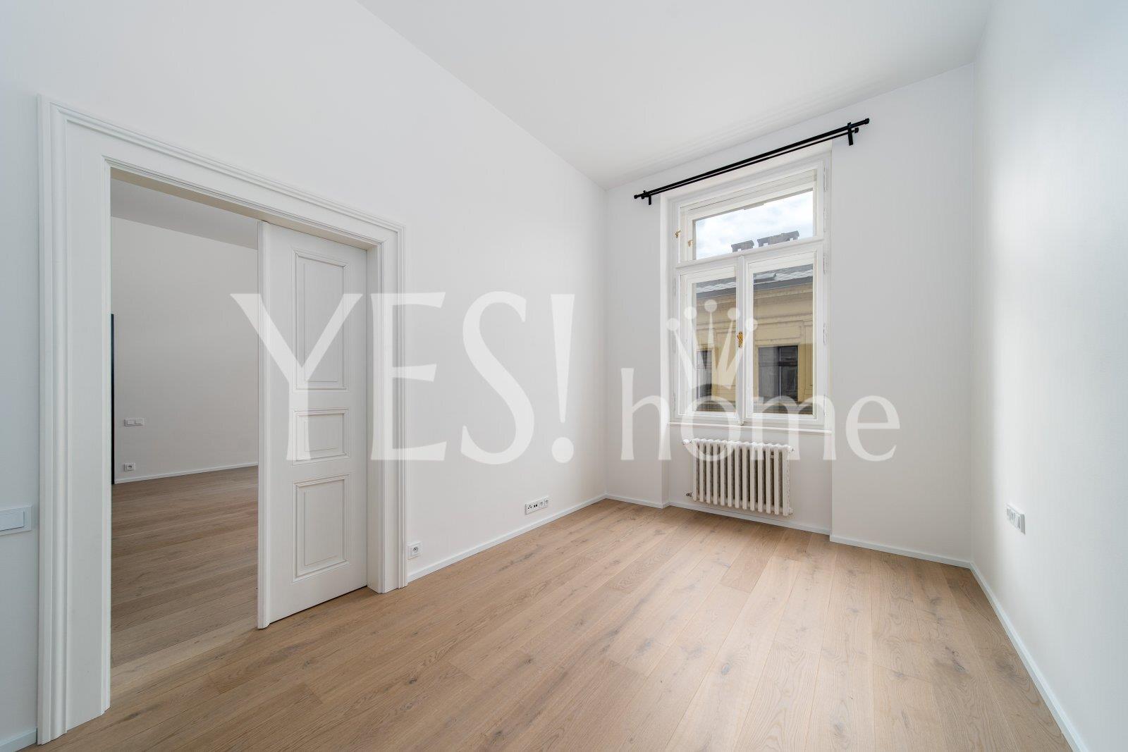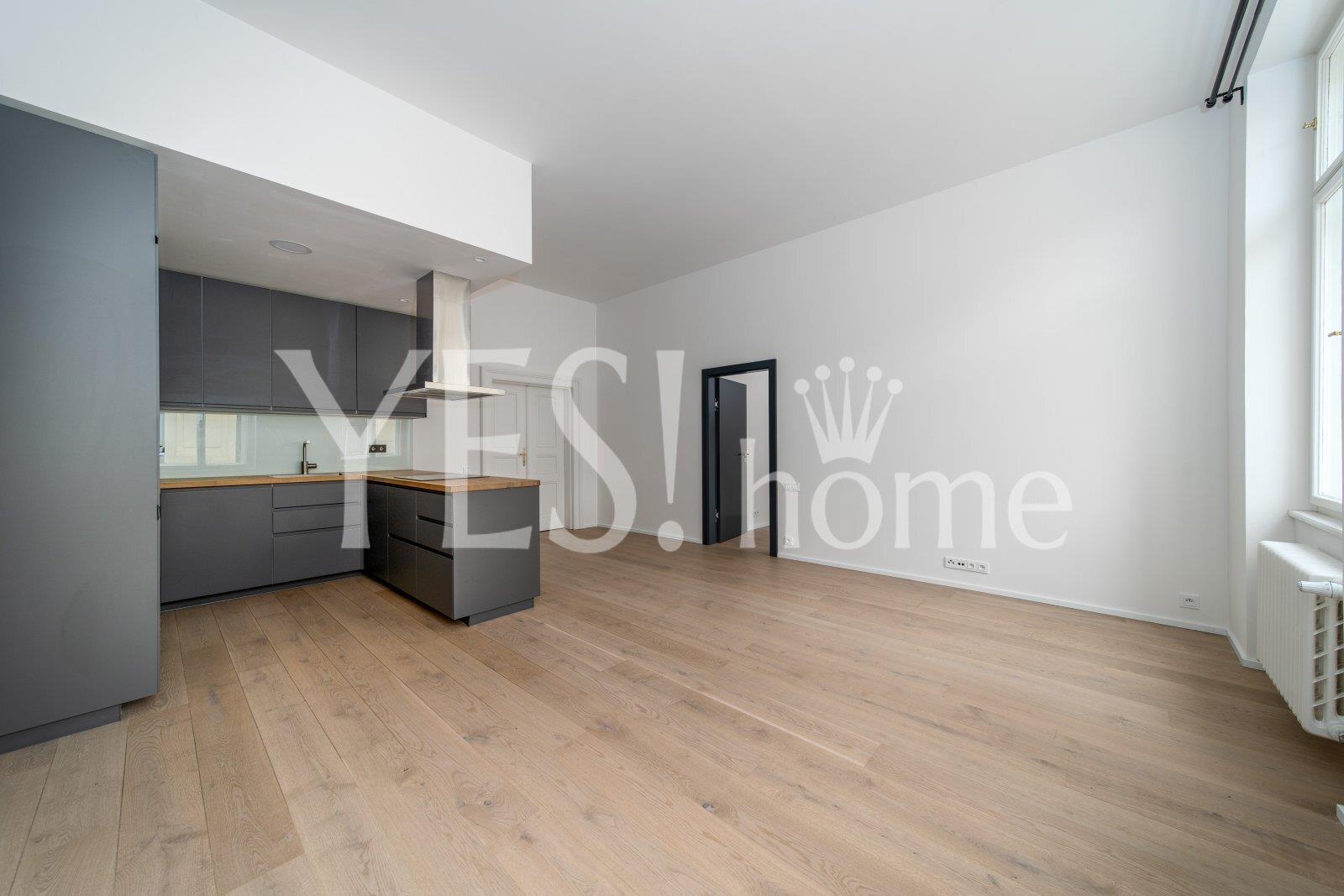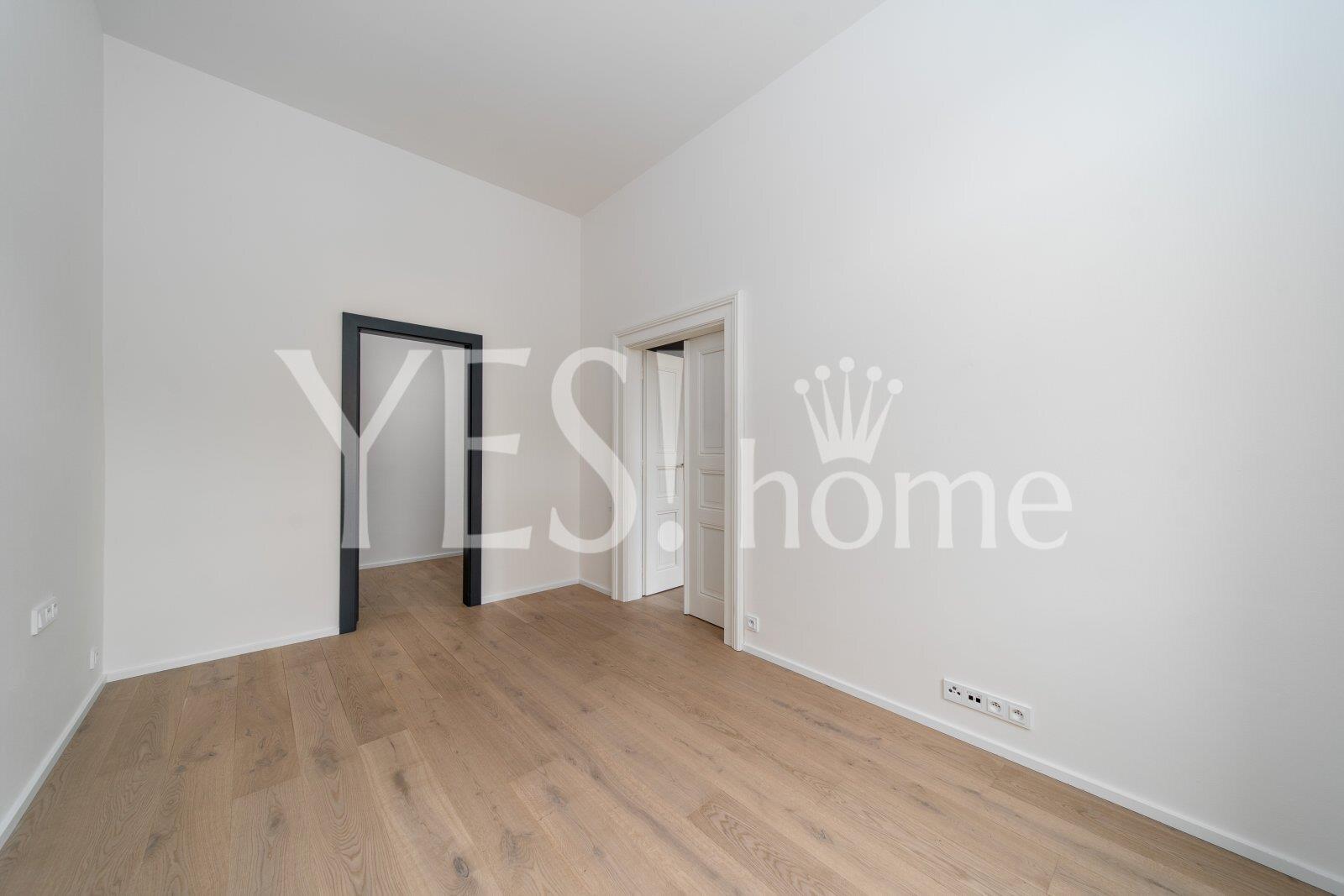 Luxury, completely new renovated, very bright, pleasantly quiet, unfurnished, 2 bedroom apartment, 71 sqm, 4th floor with elevator of new renovated historic building with parking, reception and security service 24/7 on the border of Prague 1 and Prague 2, near Václavské náměstí and Karlovo náměstí, Lazarská street, Praha 2 - Nové Město. The apartment faces a quiet cul-de-sac. The apartment offers entrance hall, spacious living room with new designer corner fully equipped kitchen (cooker hood, ceramic hob, oven, microwave, dishwasher, large refrigerator with freezer), 2 separate bedrooms (master bedroom with large dressing room), bathroom with bath and separate toilet. Quality wooden parquet floors combined with tiles, large triple glazed windows, high ceilings, new combined gas boiler for hot water and heating with individual regulation, intercom, security door. Near the house tram st. Lazarská or metro st. Národní třída, line B or metro st. Můstek, line A,B. Parking in the stacker in the courtyard for extra fee 3 900 CZK + VAT. Bills 5 000 CZK + VAT. Energy will be transferred to the tenant. Available immediately. I recommend!