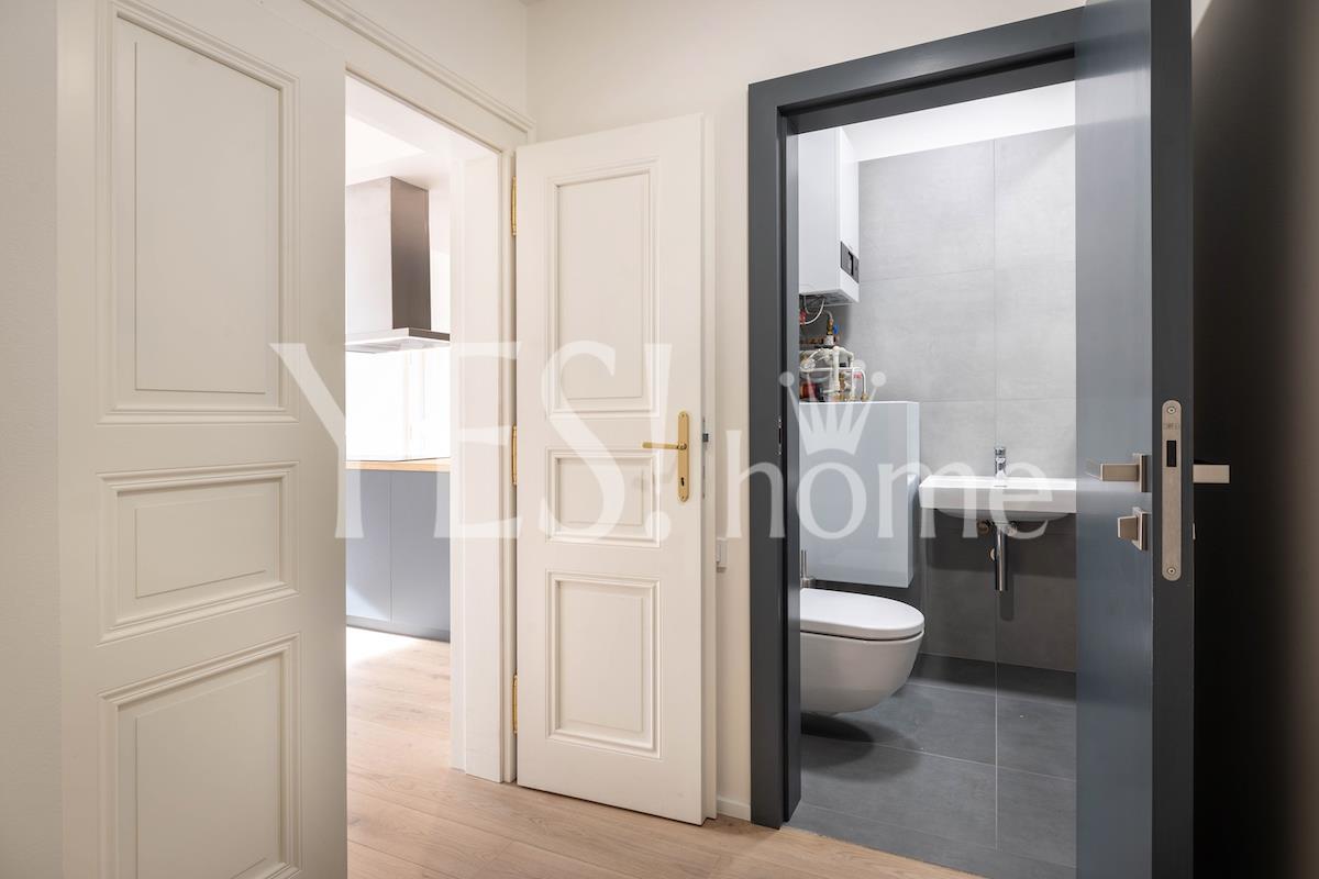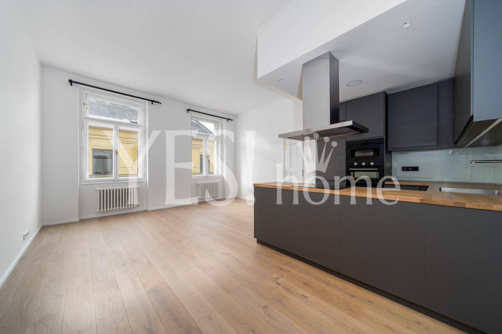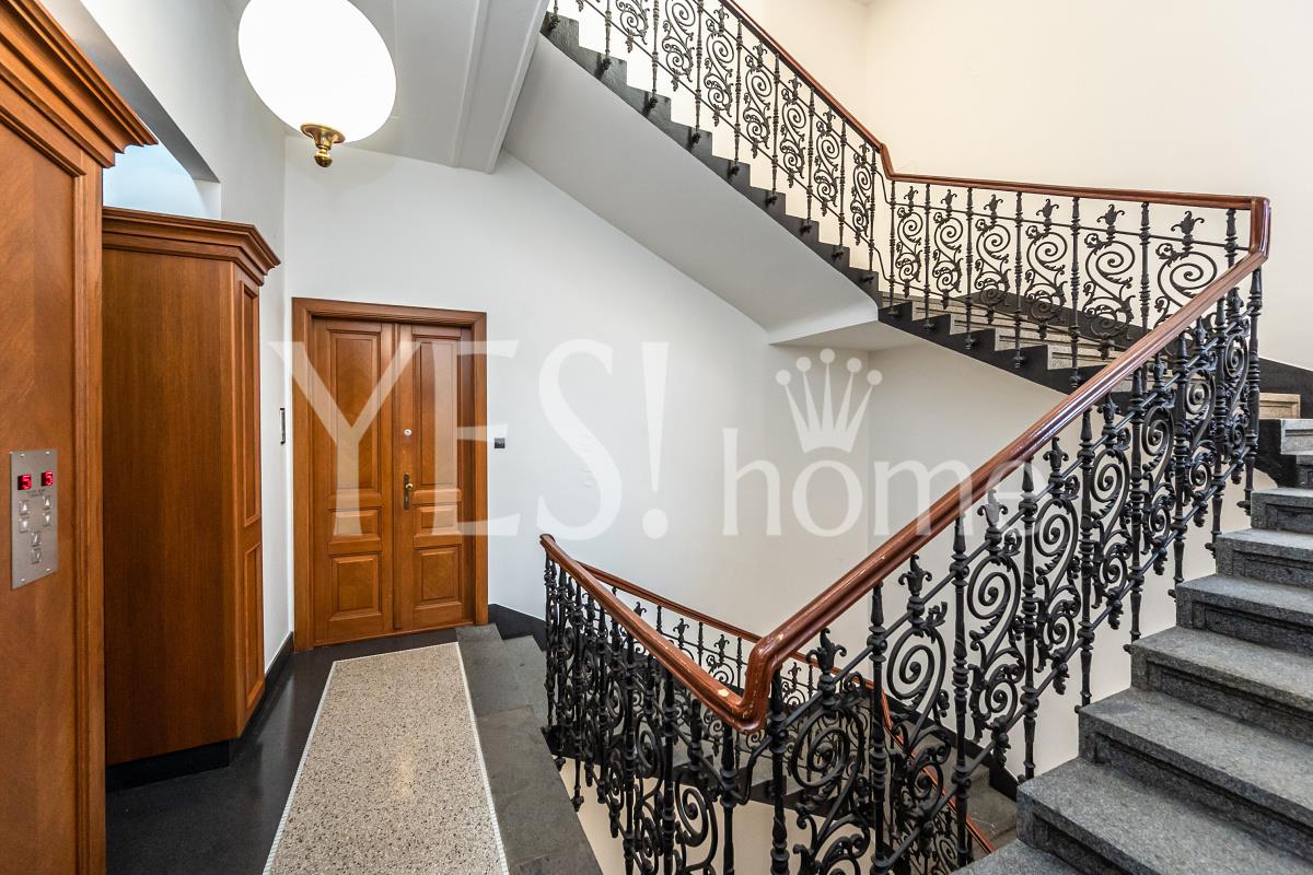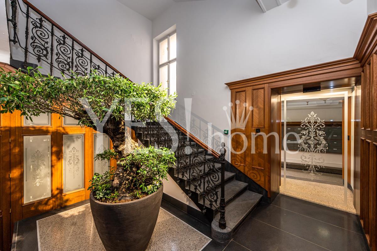 Luxury, completely new renovated, very bright, pleasantly quiet, unfurnished, 2 bedroom apartment, 71 sqm, 4th floor with elevator of new renovated historic building with parking, reception and security service 24/7 on the border of Prague 1 and Prague 2, near Václavské náměstí and Karlovo náměstí, Lazarská street, Praha 2 - Nové Město. The apartment faces a quiet cul-de-sac. The apartment offers entrance hall, spacious living room with new designer corner fully equipped kitchen (cooker hood, ceramic hob, oven, microwave, dishwasher, large refrigerator with freezer), 2 separate bedrooms (master bedroom with large dressing room), bathroom with bath and separate toilet. Quality wooden parquet floors combined with tiles, large triple glazed windows, high ceilings, new combined gas boiler for hot water and heating with individual regulation, intercom, security door. Near the house tram st. Lazarská or metro st. Národní třída, line B or metro st. Můstek, line A,B. Parking in the stacker in the courtyard for extra fee 3 900 CZK + VAT. Bills 5 000 CZK + VAT. Energy will be transferred to the tenant. Available immediately. I recommend!