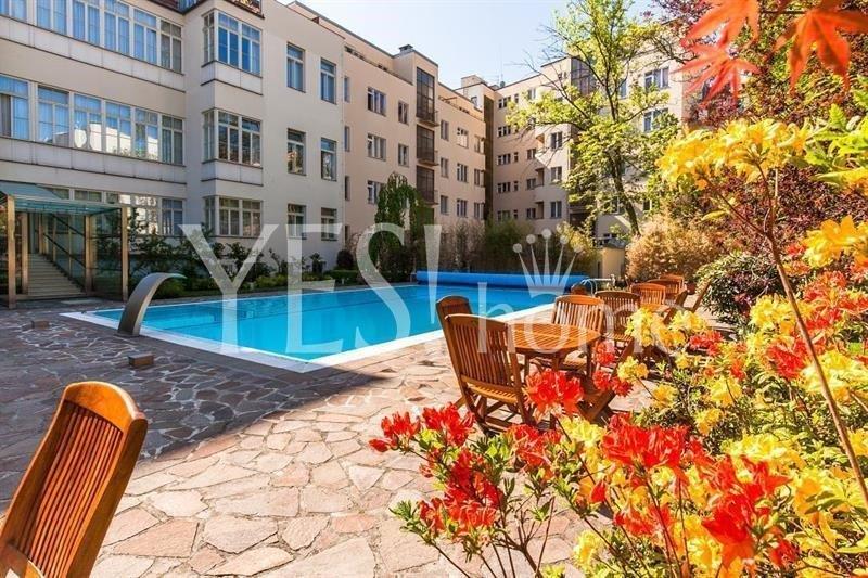 Luxury, air-conditioned, fully furnished, 2 bedroom apartment on the 1st floor with elevator, 109 sqm, prestigious completely renovated Neo-Renaissance building in residential area, Italská street, Praha 2 - Vinohrady. There is entrance hall, large living room with dining area and fully equipped kitchen (hood, stove, oven, dishwasher, refrigerator), 2 separate bedrooms with double beds, bathroom with corner bathtub with glass shower enclosure, bidet, toilet and second separate toilet. Quality wooden parquet floors in combination with tiles. Video-intercom, SAT TV, washer and dryer. In the house is 24/7 reception, very nice garden with swimming pool with hydro massage, sauna, garden barbecue, the building amenities include lift to the underground garage. Perfect location, next metro Naměstí Míru, line A, metro I.P. Pavlova, line C, tram. or bus lines, just 5 minutes walk from Václavské náměstí, near Riegrovy sady. Rent 2 000 Eur/month. Fixed bills including energy 550 Eur/month + VAT. Parking for extra fee from 5 000 CZK + VAT. Deposit 2 monthly rents. Minimum rental period 6 months. Available from 1.5.2026.