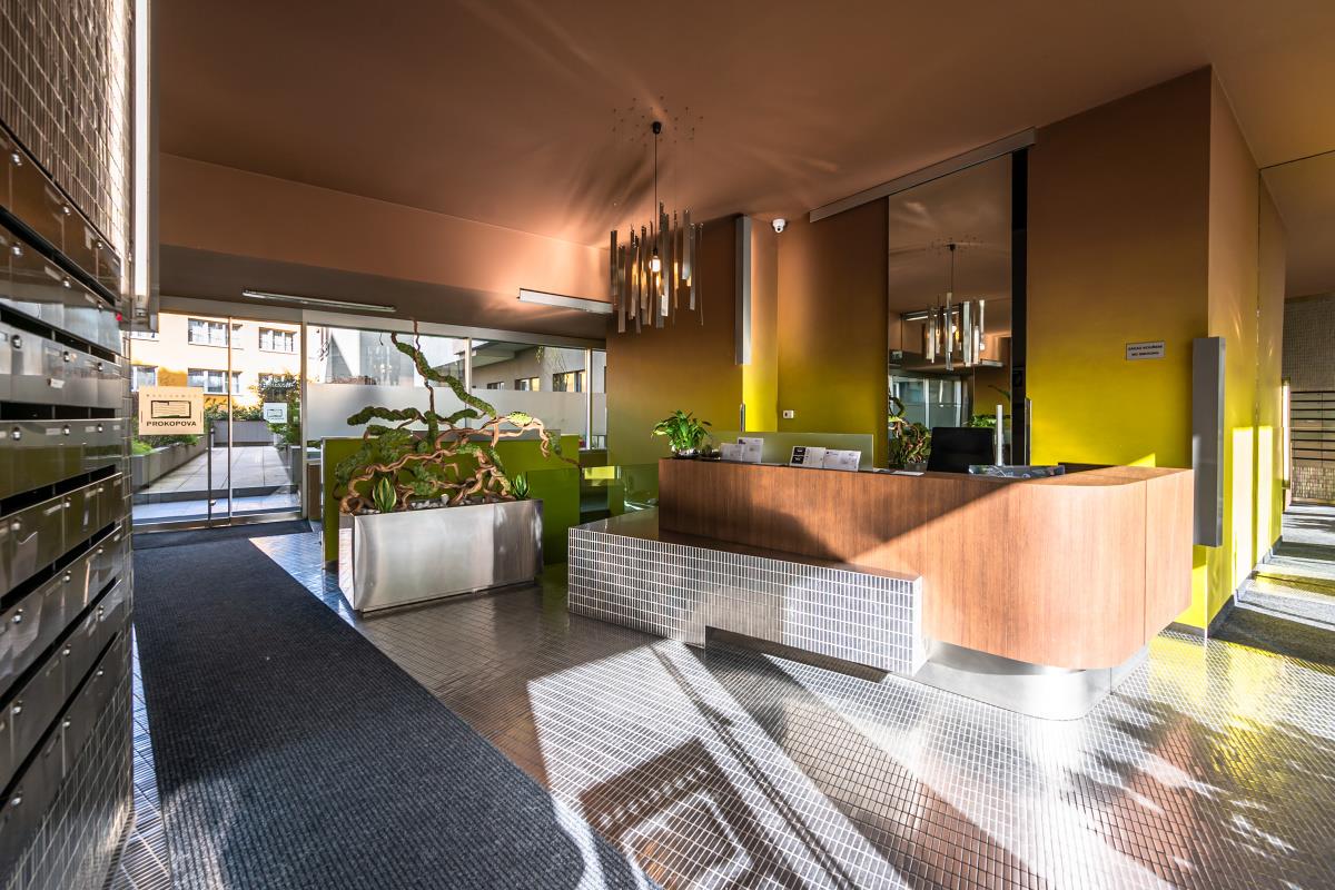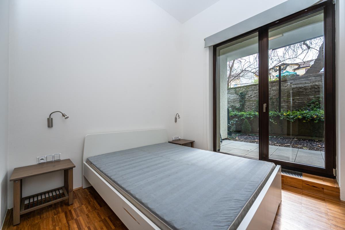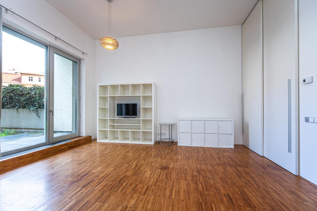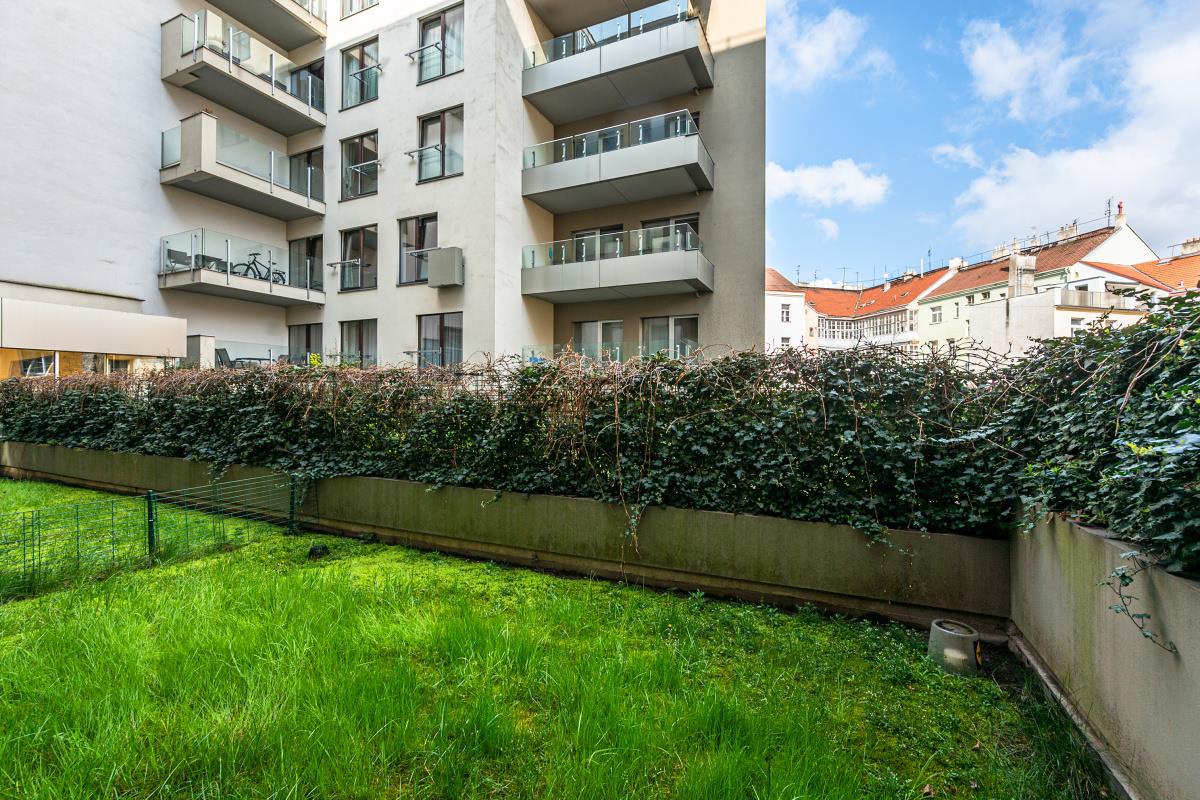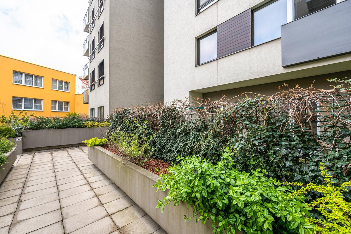 Luxury, quiet, bright, design, modern furnished, 2 bedroom apartment with 2 terraces and 2 gardens, 154 sqm (apt. 71 sqm, 2 terraces 34 sqm, 2 gardens 49 sqm), oriented to the northeast and southeast into a beautiful green courtyard on the ground floor in new building with reception 24/7, nice common garden and garage parking space in the house, Prokopova street, Praha 3 - Žižkov. The apartment is very quiet and bright facing southeast. The apartment consists of entrance hall with wardrobe, living room connected with equipped kitchen (hood, glass ceramic hob, oven, dishwasher, refrigerator, washing machine), 2 separate bedrooms, bathroom with bath and toilet, second separate toilet, 2 terraces and 2 gardens. Modern design, built-in mirrored wardrobes, modern lighting and shading, superior materials, large windows, steel and glass materials, teak wood parquet mosaic floor, mosaic tiles, sanitary ware Butterfly, satellite, Dial Telecom + UPC internet with optical cable, intercom. Great location, only 5 min. tram. st. Olšanské náměstí or tram. st. Lipanská, just 2 stops by bus to metro Florenc, line B, C, just 10 min. from Václavské náměstí. Bills incl. energy 9 000 CZK/month. Parking for extra fee. Refundable deposit 2 monthly rents. Available immediately.