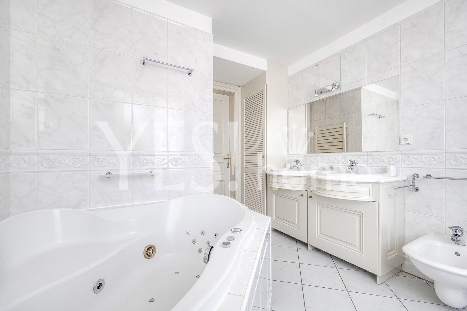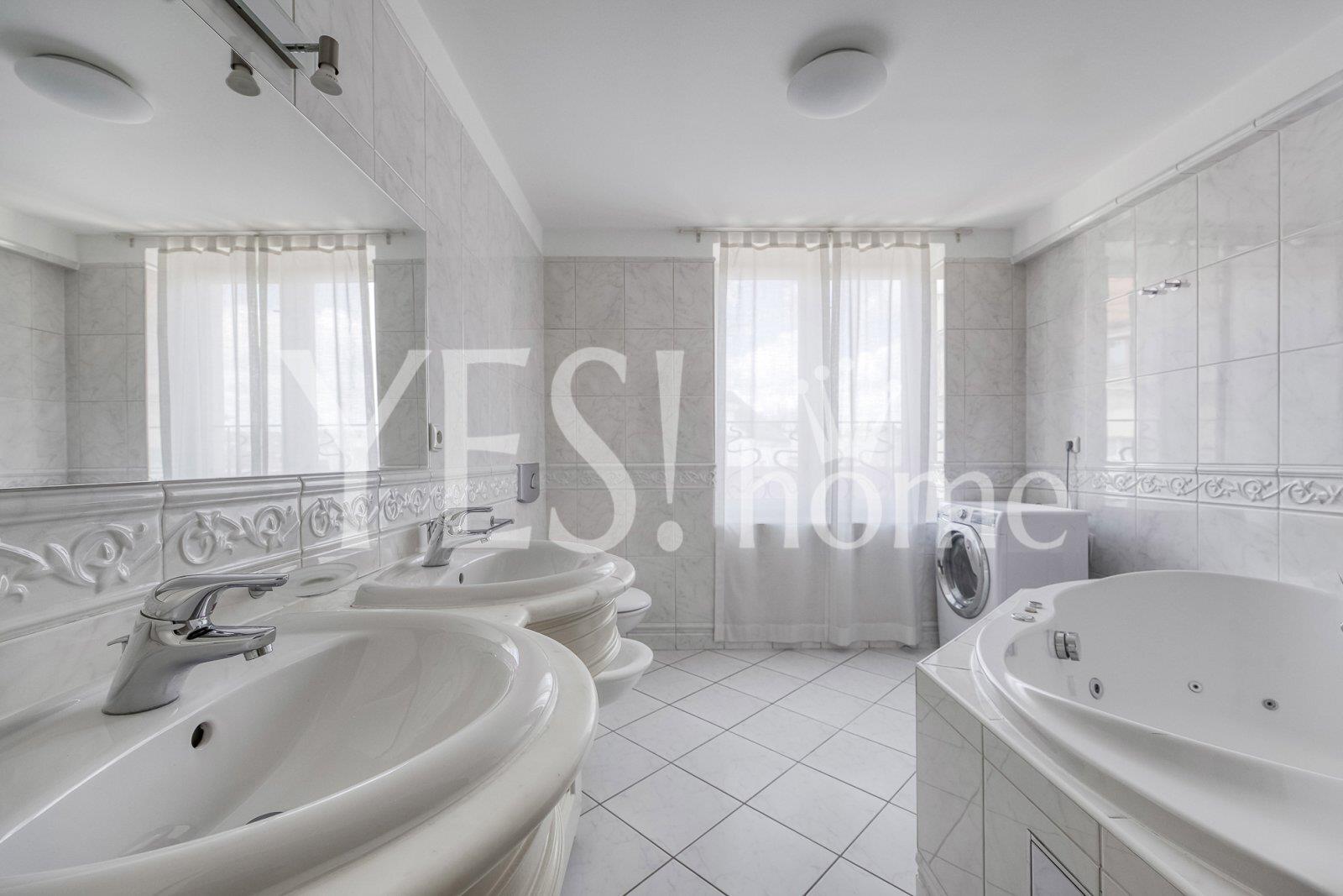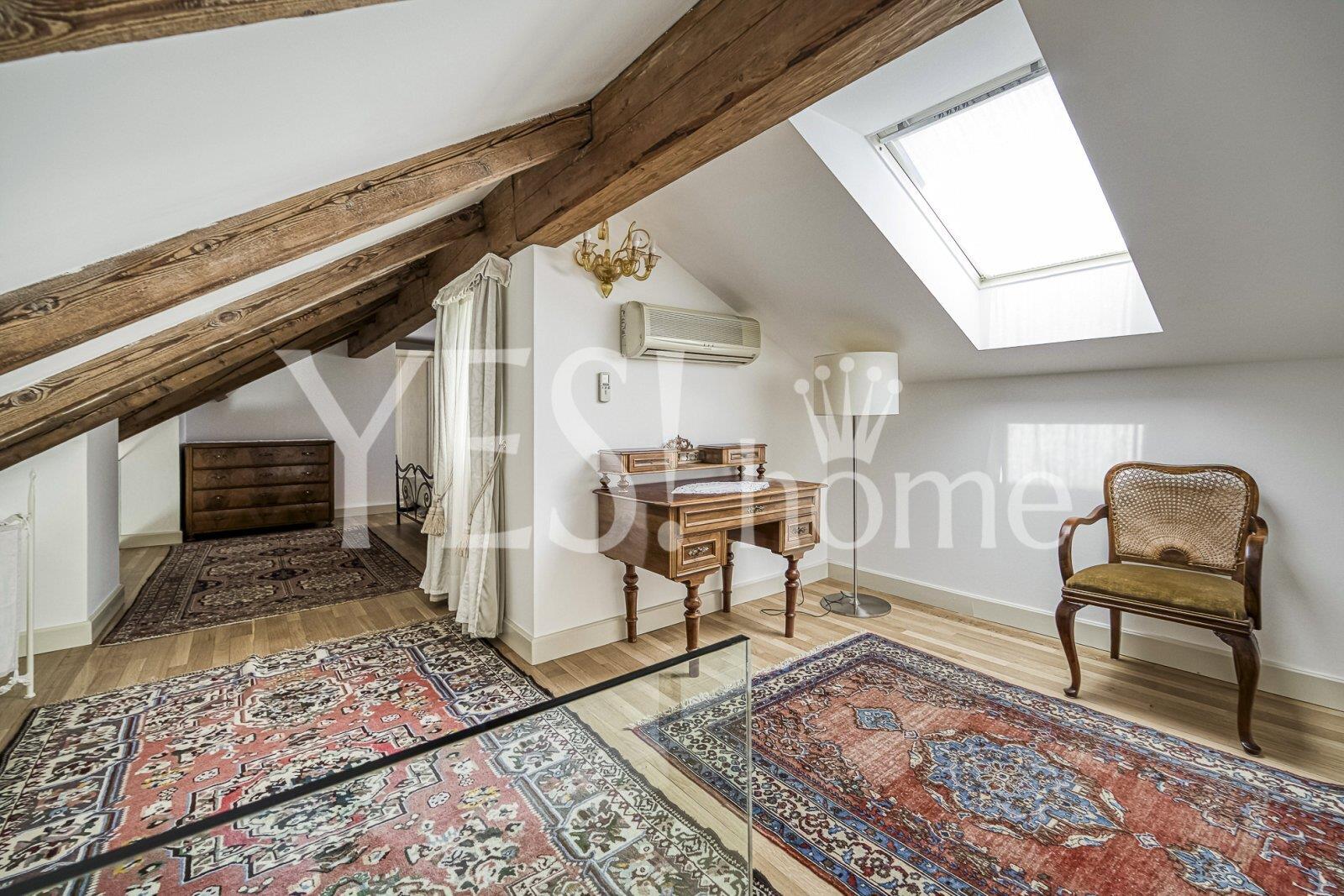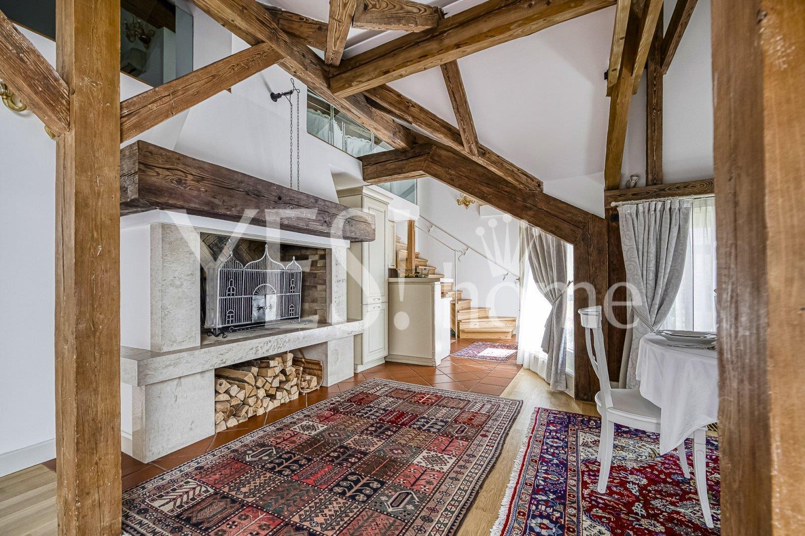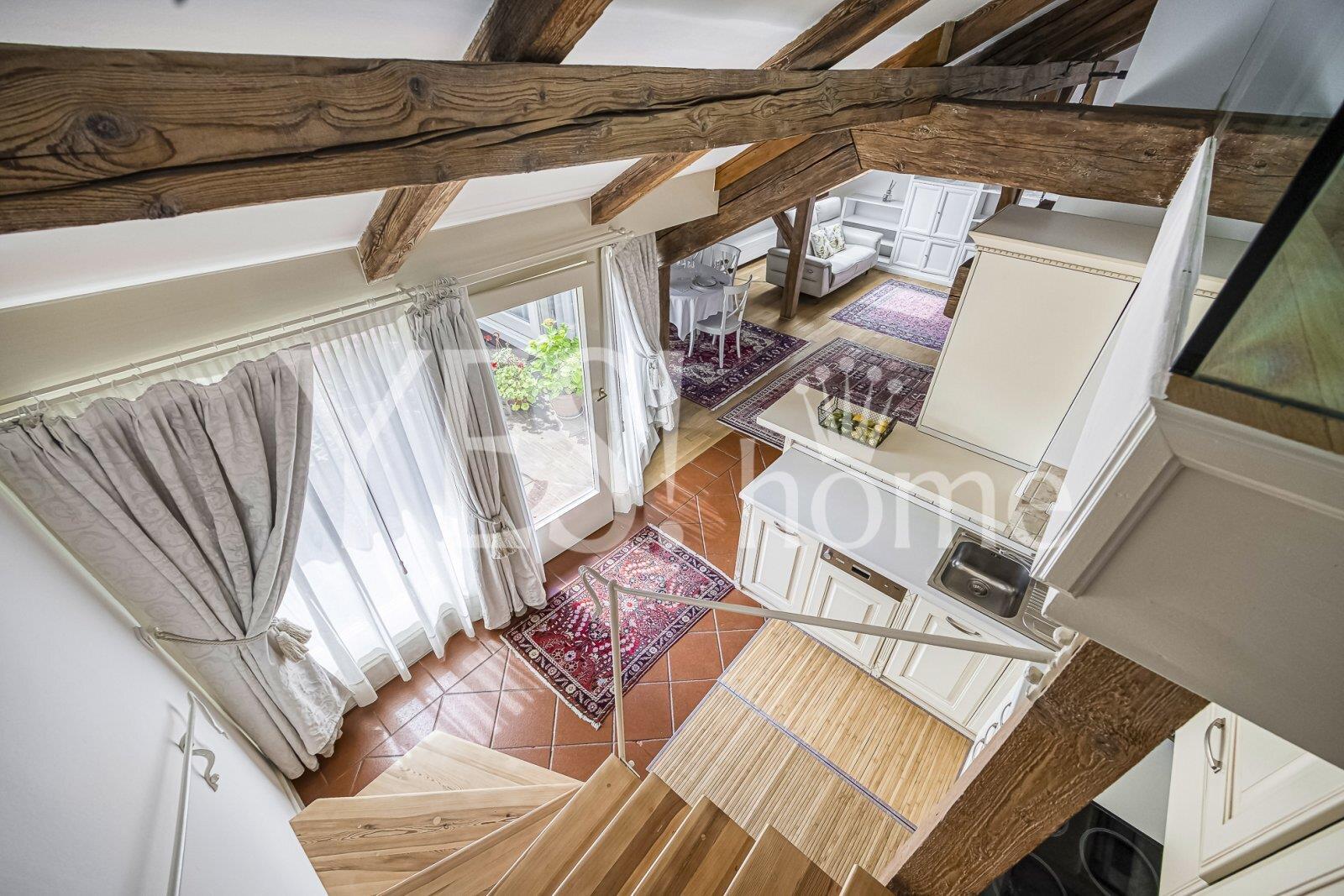 Luxury, charming, completely new renovated, comfortably furnished, fully air-conditioned, very bright, attic, duplex, 3 bedroom apartment with terrace and functional fireplace, 136 sqm (apt. 129 sqm + terrace 7 sqm), 5th floor with elevator in luxury renovated Art Nouveau representative building in the heart of Prague near Staroměstské náměstí and the Vltava river, Truhlářská street, Praha 1 - Nové Město. The apartment offers entrance hall with storage, fully equipped kitchen with dining room (hood, stove, oven, dishwasher, refrigerator, all crockery and glassware) with living area with fireplace and access to beautiful terrace, spacious bathroom with whirlpool tub, washing machine and toilet, first bedroom with wardrobes. The second floor offers open second bedroom and study. The whole apartment is equipped with stylish furniture. Wooden beams gives the apartment unique atmosphere. Quality wooden parquet floors in combination with tiles. Available TV, SAT, WiFi, alarm, video intercom, security door. The home security system. All the amenities, OC Palladium, metro Náměstí Republiky, line B or tram. lines. Rent 2 600 Eur/month. Fixed bills including energy 450 Eur/month + VAT. Deposit 3 monthly rents. Minimum rental period 6 months. Available from 1.2.2026.