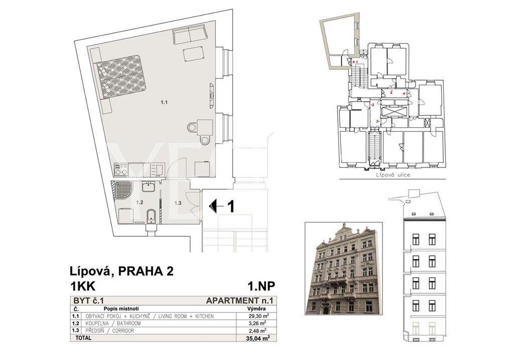 Luxury, unfurnished, studio apartment to rent, 35 sqm, Lípová, Praha 2 - Nové Město