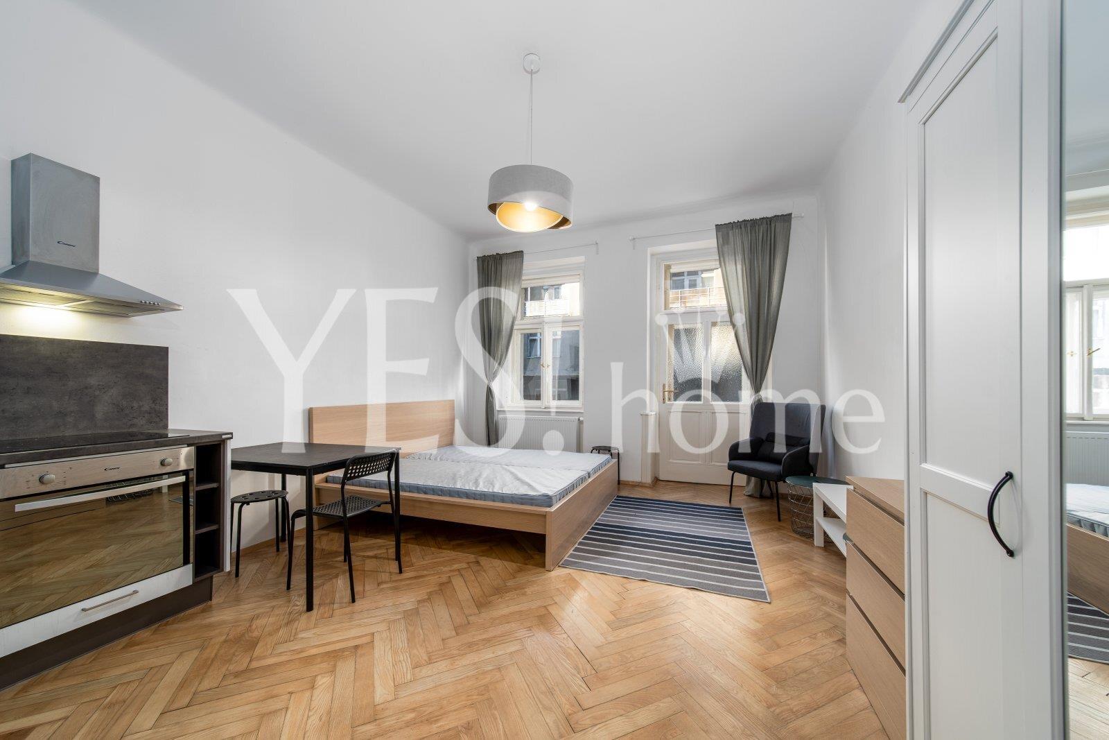 Luxury, new renovated, cozy, fully furnished, studio apartment with balcony, 33,47 sqm (apt. 32,03 sqm, balcony 1,44 sqm), 1st floor with new modern elevator of new renovated Art Nouveau building near Václavské náměstí, Lípová str., Praha 2 - Nové Město. The apartment faces the street on the west side. The apartment offers entrance hall, room with fully equipped kitchen (extractor hood, ceramic hob, electric oven, dishwasher, refrigerator, washing machine) and entrance to the balcony, bathroom with shower and toilet. Quality parquet floors combined with tiles, own new gas boiler Vaillant (hot water, heating), security door, intercom. Next the house tram. st. Štěpánská, near metro st. I.P. Pavlova, line C or metro st. Karlovo náměstí, line B. Bills 1 700 CZK/person + energy will be transfer to the tenant. Refundable deposit 2 monthly rents. Available immediately. I recommend!