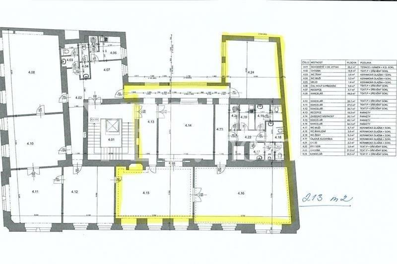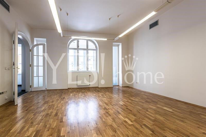 Representative, new renovated, unfurnished office space, 213 sqm, 3rd floor with elevator in well maintained Art Nouveau building with reception and security next Václavské náměstí, Politických vězňů street, Praha 1 - Nové Město. The space entrance hall, 4 separate rooms, kitchen and 3 toilets. Parquet floors combined with tiles. High-speed internet, optical cable from Praha1.net distributed to all offices + O2 antenna with a substation in the house. Reception service 8:00h-20:00h. Perfect location, next the house is metro st. Muzeum, line A,C or metro st. Můstek, line A,B, tram. st. Václavské náměstí. Bills 12 000 CZK incl. energy (electricity, heating, hot and cold water (each unit has own measuring device), cleaning and electricity in common areas, elevator, garbage, security system). Possibility of parking in the courtyard for extra fee 4 000 CZK. Refundable deposit 2 monthly rents. Available immediately. Prestigious address for your business for attractive price. I recommend!