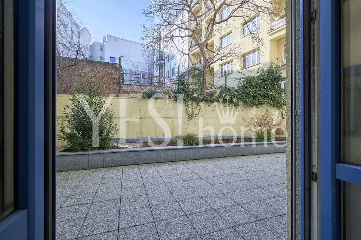 Unfurnished, fully air-conditioned, office space with private terrace, 184,62 sqm (office 101,62 sqm, terrace 83 sqm), ground floor with elevator of representative, modern, office building with reception and security service 24/7, magnetic card access, high-speed internet with fibre optic connection and parking, at prestigious address in quiet part of the centre, Klimentská street, Praha 1 - Nové Město. Each floor has common equipped kitchen, bathroom with shower, toilets, quiet terraces facing the courtyard of selected units. The floors are carpeted, laminate floors and tiles. Possibility to choose other size options of offices according to the current offer. Next the building tram. st. Revoluční, metro st. Náměstí Republiky, line B. Up to 4 parking spaces are available for extra fee 6 000 CZK + VAT/1 space/month. Rent 2 163,93 EUR + VAT (1 524,30 EUR rent + 639,63 EUR add on). Bills 20 196,68 CZK + VAT (advance payment for utilities 140 CZK/sqm). Deposit 2 monthly rentals. Available immediately.