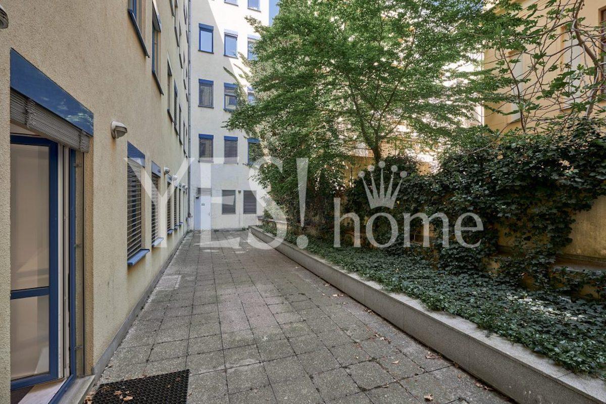 Unfurnished, fully air-conditioned, office space with private terrace, 118,46 sqm (office 78,46 sqm, terrace 40 sqm), ground floor with elevator of representative, modern, office building with reception and security service 24/7, magnetic card access, high-speed internet with fibre optic connection and parking, at prestigious address in quiet part of the centre, Klimentská street, Praha 1 - Nové Město. The space offers two offices and a kitchen, see floor plan, blue section (offices 1.28, 1.27). Each floor has common equipped kitchen, bathroom with shower, toilets, quiet terraces facing the courtyard of selected units. The floors are carpeted, laminate floors and tiles. Possibility to choose other size options of offices according to the current offer. Next the building tram. st. Revoluční, metro st. Náměstí Republiky, line B. Up to 4 parking spaces are available for extra fee 6 000 CZK + VAT/1 space/month. Rent 1 065,37 EUR + VAT. Bills 14 915,20 CZK + VAT (advance payments for services 140 CZK/sqm). Refundable deposit 2 monthly rents. Available immediately.
